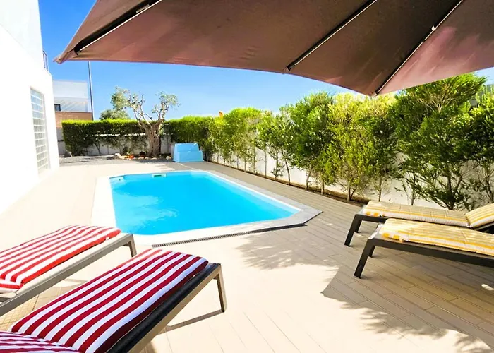 ポルチマン空港はヴィラ30kmの場所にあります. 3A Mourinhos - Casas&Papeisヴィラにあるビ-チ施設はサマ-ベッド とパラソルです.
